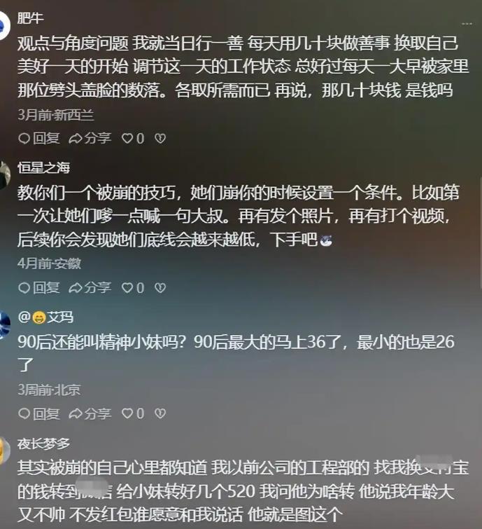 有人甚至总结出一套要钱的套路,例如,在多次互动后再提出请求,或根据不同对象给钱的痛快程度和金额大小进行分类管理。