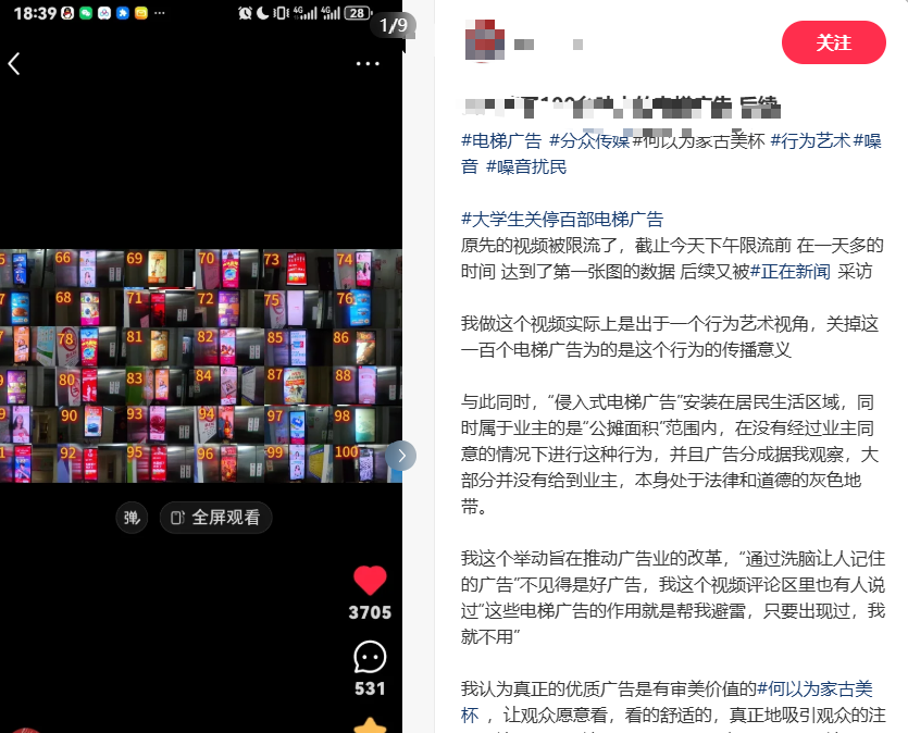 孔同学的做法,使得许多深受电梯广告困扰的网友拍手叫好。但也有人提醒,电梯作为共有部分,其管理权属于全体业主共同行使,个人擅自关停电梯广告,虽是出于好意,但恐有侵权风险。