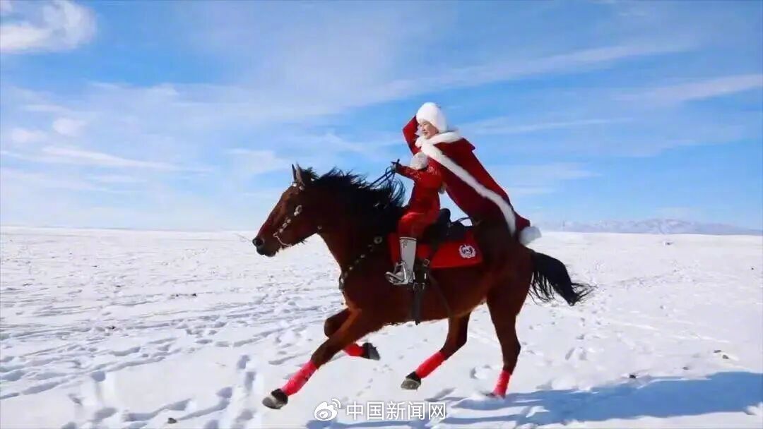 记住贺娇龙,是因为一段雪地策马的视频。2020年,时任新疆伊犁哈萨克自治州昭苏县副县长的贺娇龙,拍摄了一条推荐昭苏冰雪旅游资源的视频。镜头里的她,一袭红衣,英姿勃发,与身后的辽阔草原、群山白雪相呼应,让人惊艳。