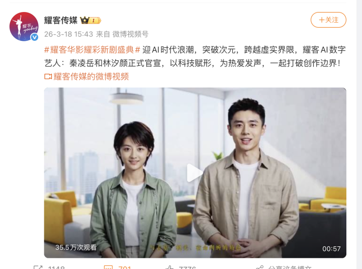 其次,目前很多AI演员肖像权纠纷不断,整个行业还没有画出一根非常明确的合规红线。比如某传媒公司刚刚宣布签约的两位AI演员都被网友指出撞脸真人演员,面部神态略显僵硬诡异,质感仍有待提升。在这样的大背景下,把所有配角交给AI来演,到底会带来更多麻烦还是收益,也还不好说。